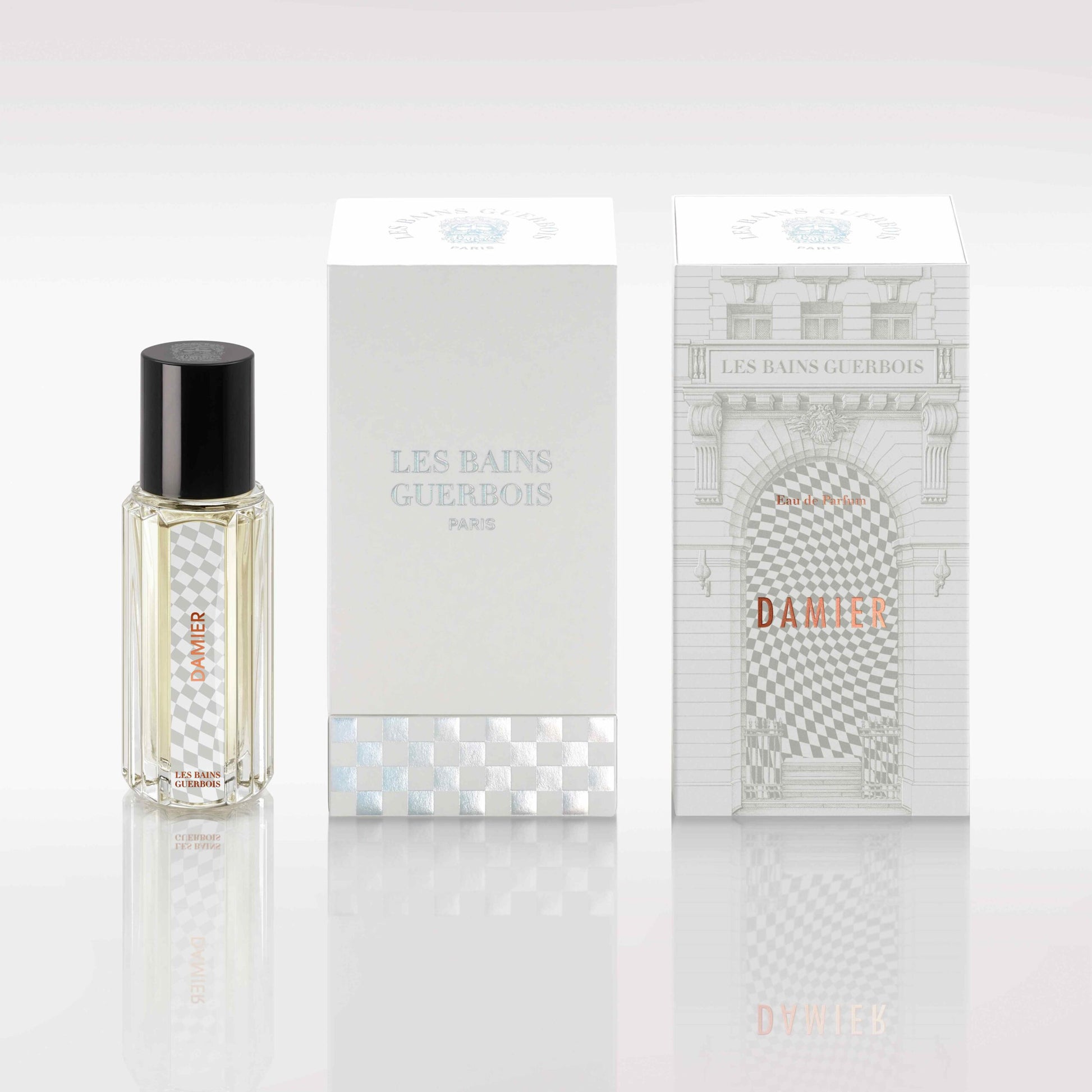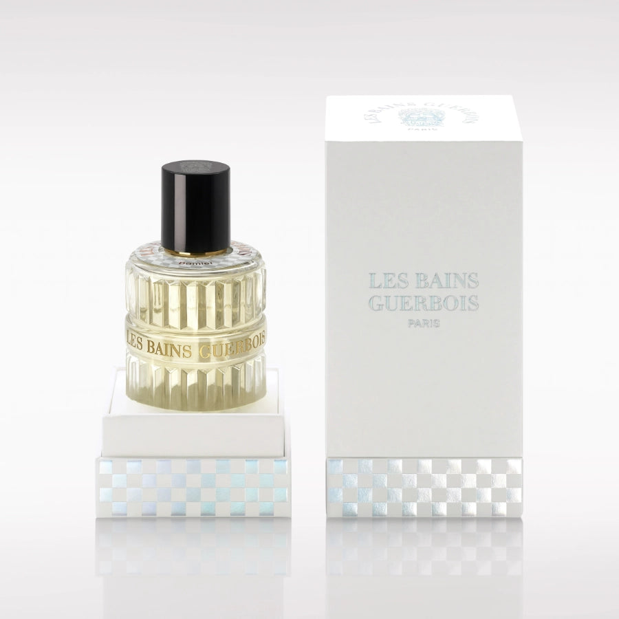Muoversi, ballare, giocare, rincorrersi sulla scacchiera gigante di Les Bains Paris. Un luogo mitico. Una scia di profumo. Piste da ballo. Parchi giochi. Una caccia al tesoro. Impressioni cinetiche. Piccole piastrelle, grandi quadrati, diagonali bianche e nere. Note di testa taglienti, scure e speziate di pepe nero contrastano con una generosa base bianca di sandalo muschiato e lattiginoso.