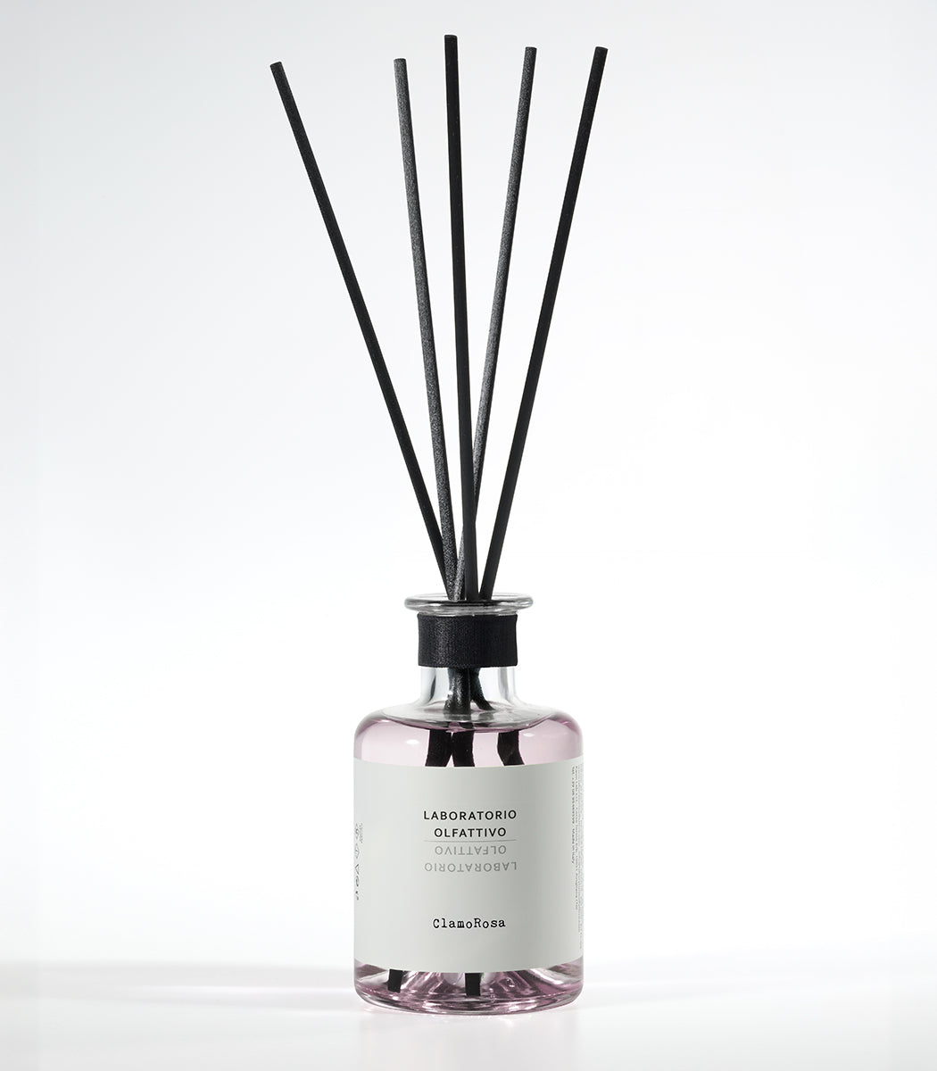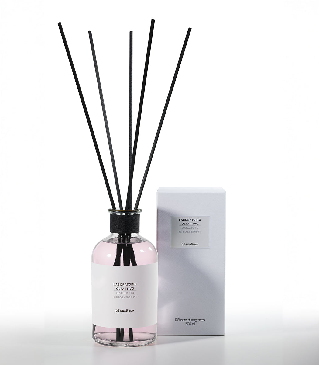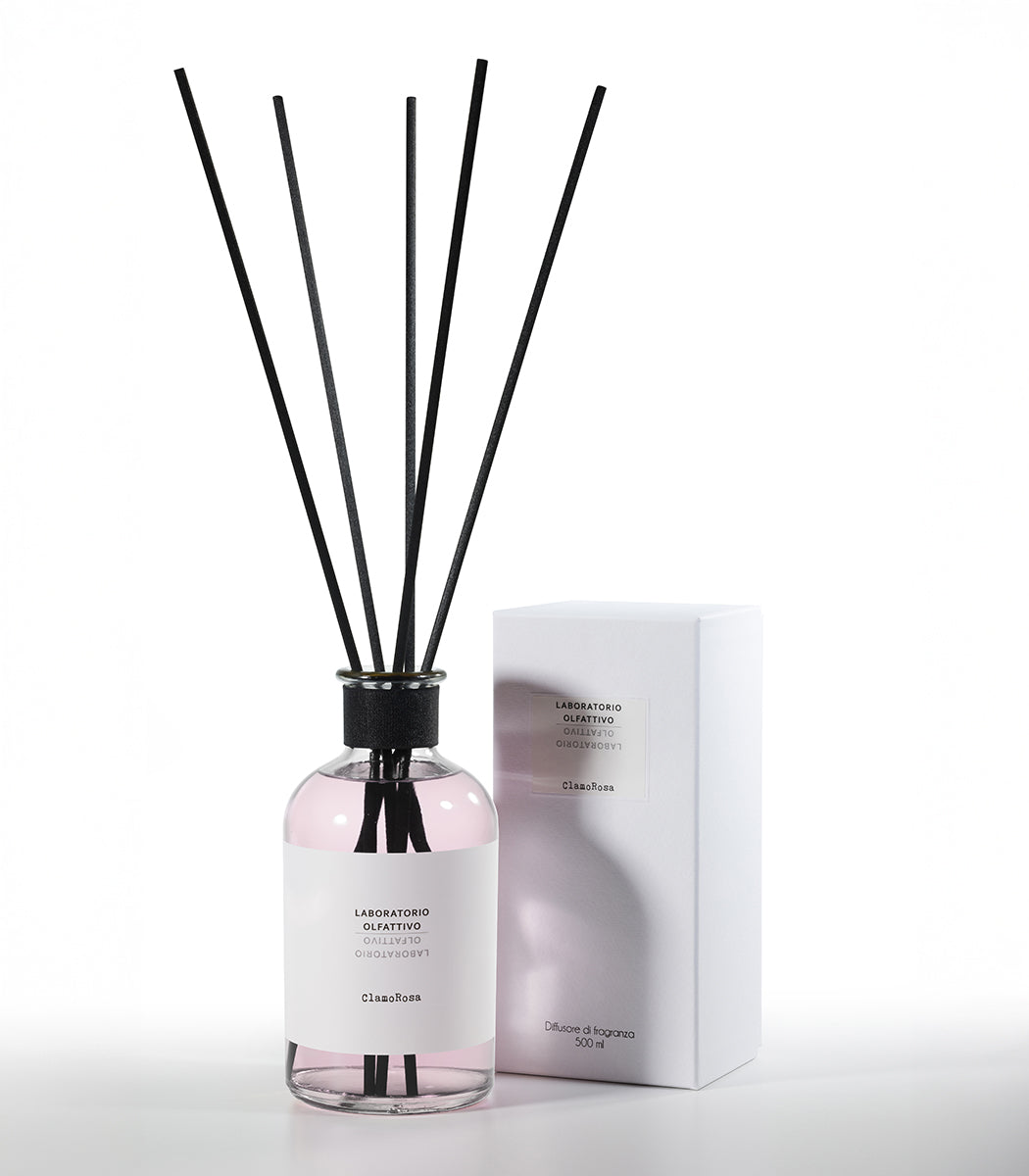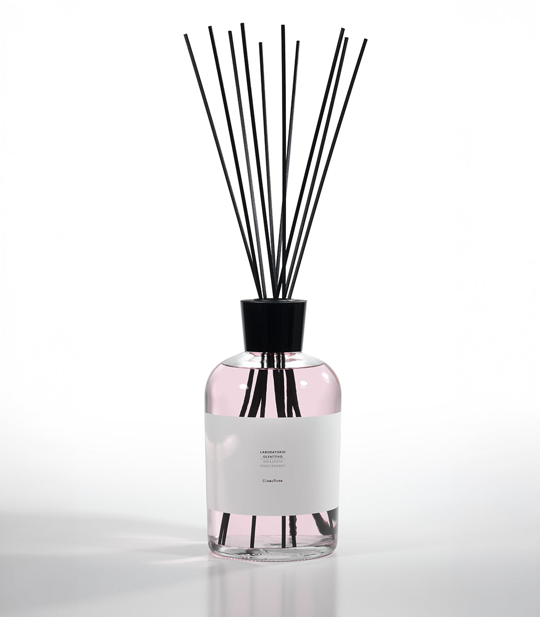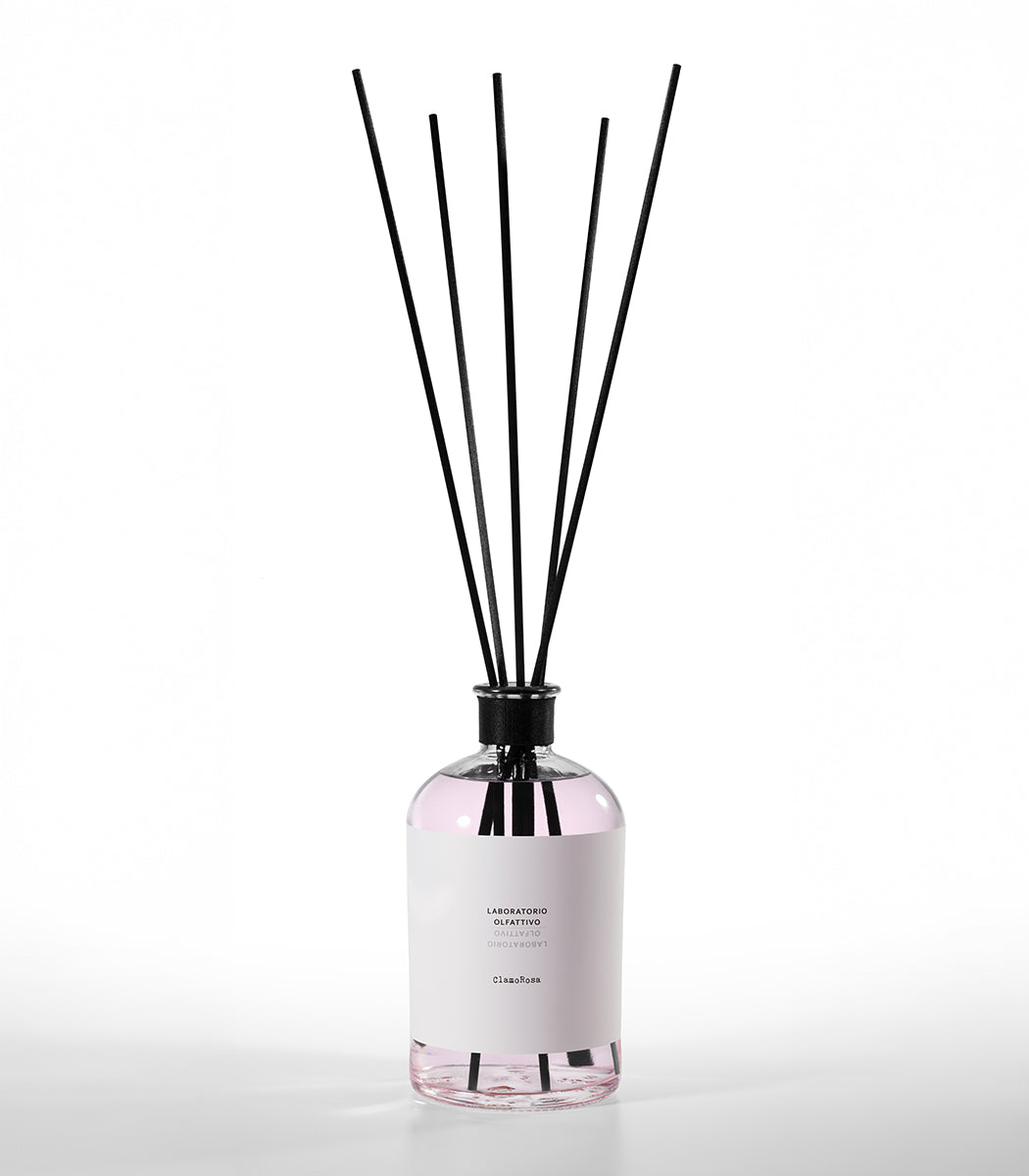 Una rosa clamorosa, una rosa croccante, brillante e diffusiva. Il suo cuore floreale, avvolgente e sensuale è sollevato da spezie e agrumi ma, un fondo legnoso ambrato rivela un lato misterioso, lievemente dark. Una fragranza intrigante, ammaliante ma che racchiude anche dolcezza e raffinatezza. Non si resta indifferenti a ClamoRosa, il suo diffondersi nell’ambiente è presenza ed eleganza. L’ambiente accoglie la fragranza, la fa sua, la adatta a sé e la consegna a noi che viviamo le nostre case e i nostri uffici, trasportandoci in un universo romantico ma conturbante.