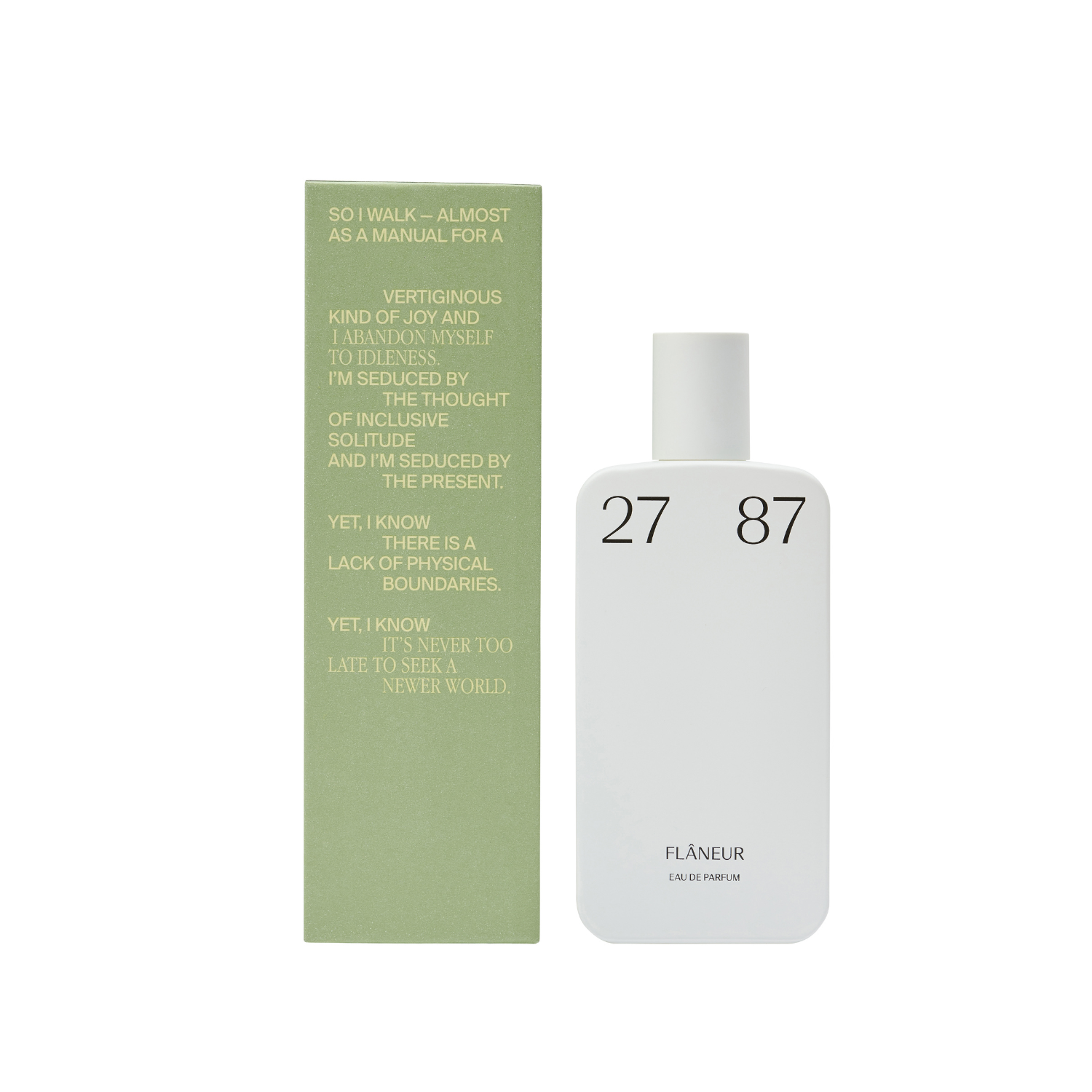«Flâneur» è una proposta — un invito a vagare oltre i confini dei superlativi e dell’ambizione. Contemporaneo, visionario e con un tocco di malinconia, «flâneur» si arricchisce del verde, leggermente amaro, aroma dell’assenzio. È bilanciato dal calore del legno di Cashmere, del tiglio e del fiore di mandorlo, arricchito dalla freschezza del bergamotto e da una base di anice stellato, ambra secca e Vetiver, evolvendo in una fragranza secca, ma calorosa, che evoca al tempo stesso nostalgia e una presenza travolgente.