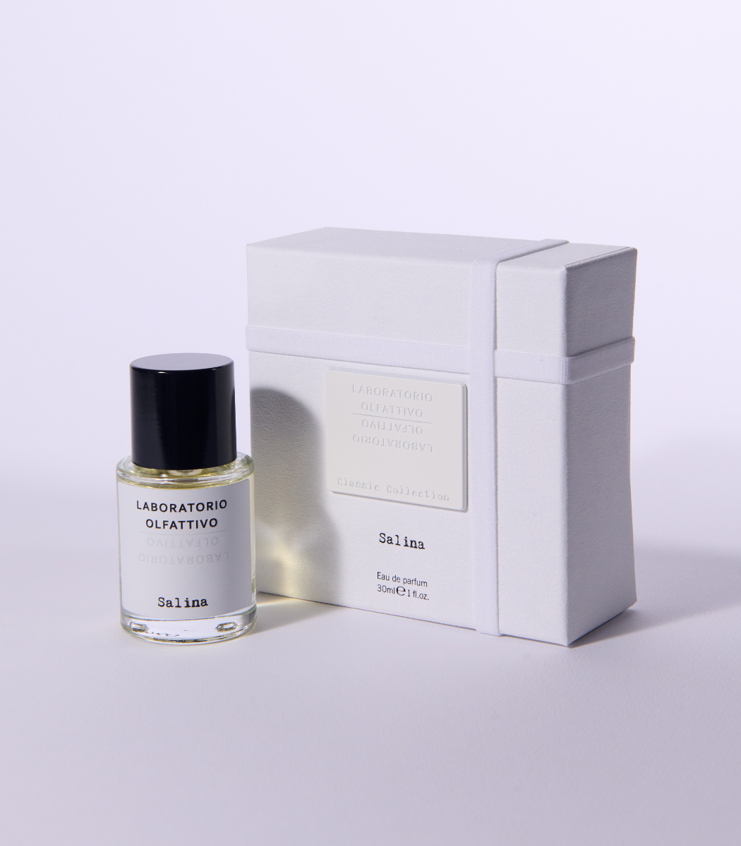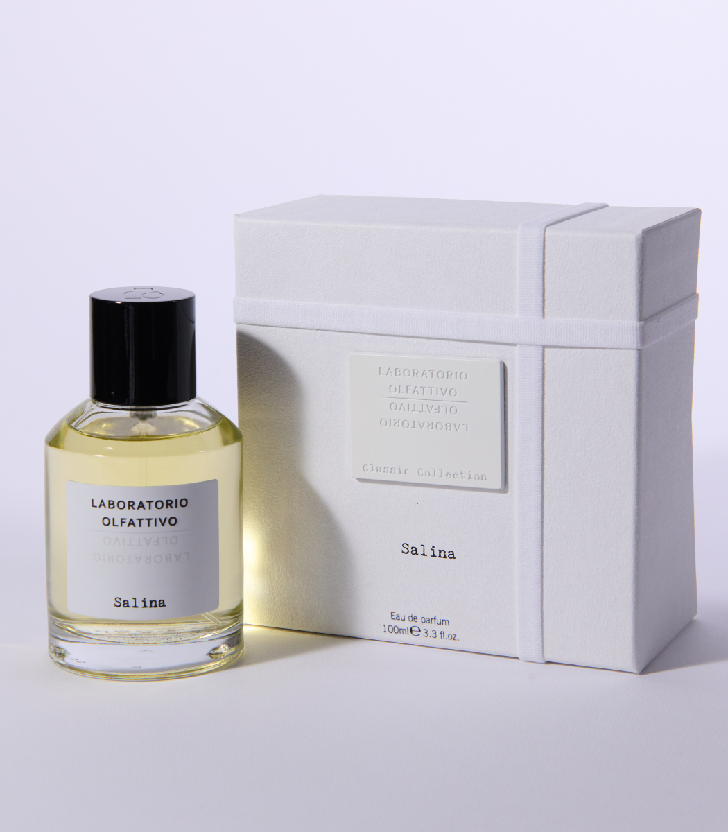 Conchiglie, stelle marine, sabbia calda e salmastro al posto delle consuete note usate in profumeria, la piramide olfattiva di Salina si adorna di riflessi color acquamarina, accenti sapidi e sfumature solari. Spumeggiante e acquatica, ma anche calda. Salata e, al contempo, dolce. Sottile e avvolgente. Seguire l’evoluzione di Salina è come decidere di compiere una passeggiata su una spiaggia deserta, nel momento della giornata in cui il sole non si è deciso ancora a tramontare. Con Salina l’olfatto acquisisce poteri che normalmente appartengono alla vista, al tatto e al gusto. Più che evocativa, questa fragranza è un’esperienza sensoriale totale e ogni sua nota suggerisce al naso quello che la fantasia non riesce a immaginare: il sapore del mare, il verde della pineta marittima e della macchia costiera, il luccichio accecante del sole che si riflette sull’acqua, il gioco infantile delle orme lasciate sulla sabbia, cancellate dai flutti marini, e la carezza del sole sulla pelle.